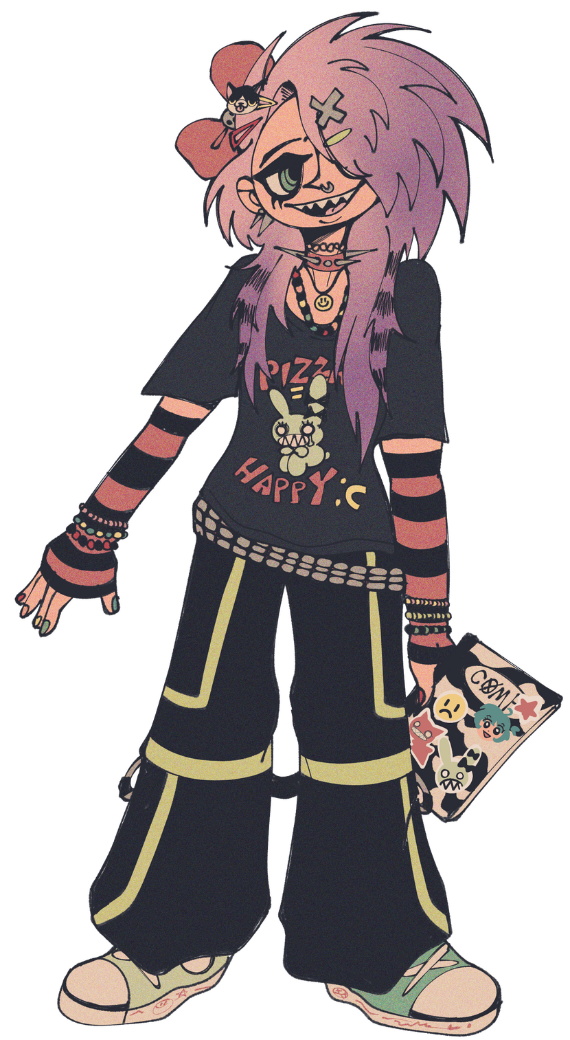- Birthday: April 9th 1996Corey Mitchell is the LOLigans' chaotic gremlin, the rebellious heart that refuses to let go of the past. Since elementary school, she’s been dedicated to scene culture, wearing her neon colors, studded belts, and big bow hair accessories like a badge of honor.Corey's life is a whirlwind of Instagram fame, showcasing her chaotic dances and nostalgic rants, paired with blaring scene music. Her creativity is boundless, though her fixation on the past often keeps her from embracing change. She spends nearly all her money at the mall. And her hygiene... well, let’s say her preference for body spray over showers makes her a memorable presence, for better or worse.